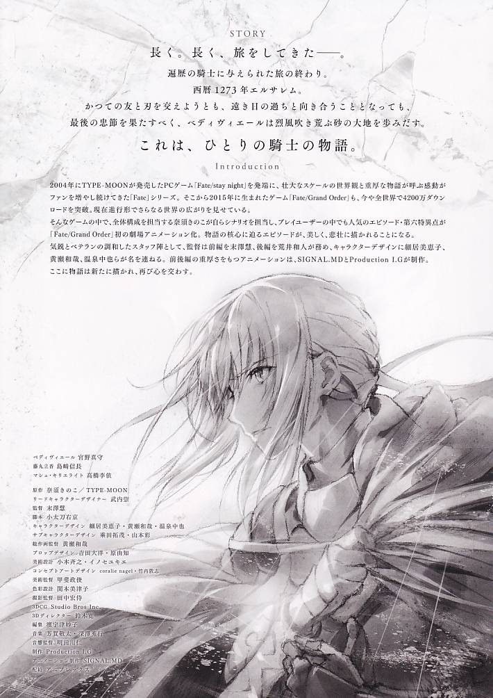 スマートフォン向けゲームアプリを初めて劇場アニメ化したFateGrand Order 神聖円卓領域キャメロットの前編。全体構成を担当する奈須きのこが自らシナリオを手がけた人気エピソード第六特異点をもとに、物語の核心に迫るエピソードを描く