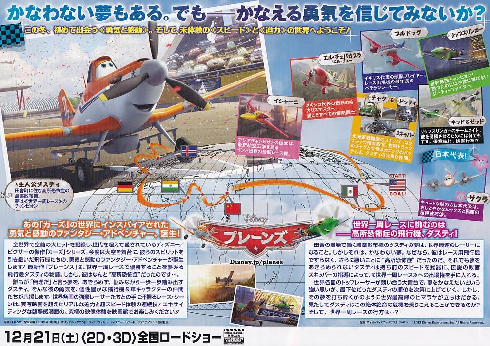 カーズの世界観から生まれた、飛行機が主人公のディズニーアニメ。飛行機なのに高所恐怖症な主人公ダスティが、夢をかなえるため奮闘する姿を描く