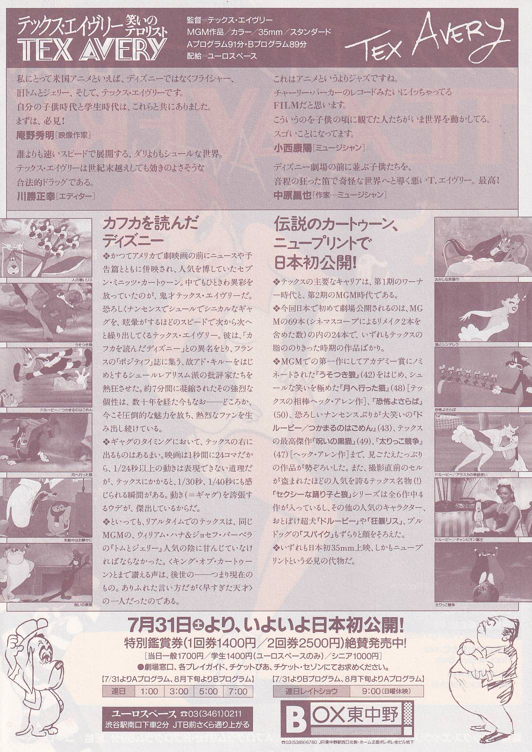 1940年代に活躍したテックス・エイヴリーの短編アニメ24本上映