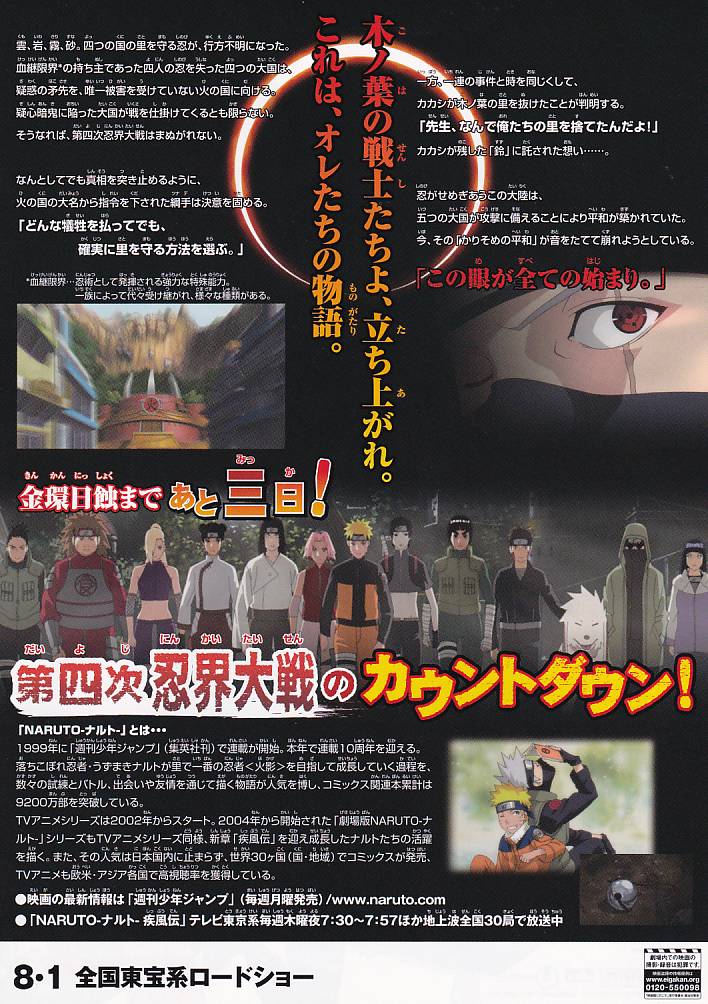 劇場版第6弾。第四次忍界大戦の危機が迫る中、火の国の大名から指令を受けた火影・綱手は真相を突き止めるべく立ち上がるが…