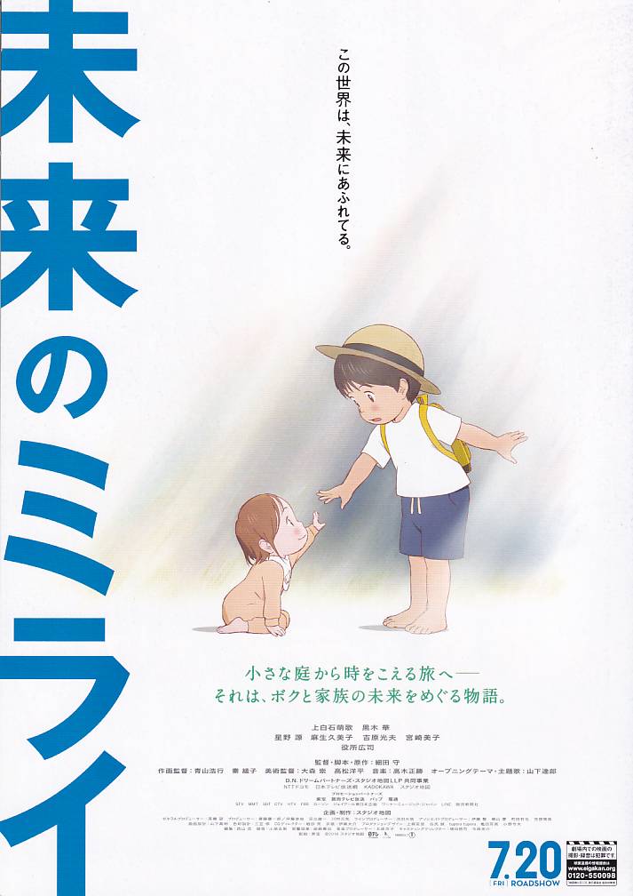 甘えん坊の4歳の男児くんちゃんと、未来からやってきた成長した妹ミライの2人が繰り広げる不思議な冒険を通して、さまざまな家族の愛のかたちを描く
