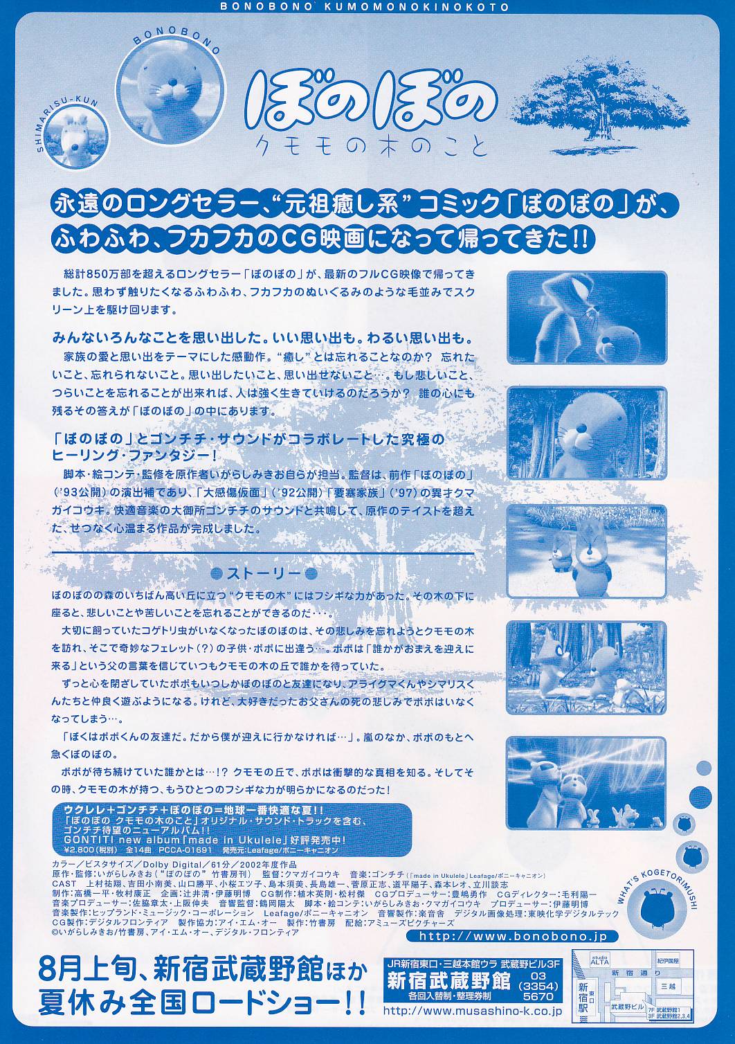 不思議な木を巡って繰り広げられる、ラッコのぼのぼのと森の仲間たちの騒動を描いた和み系長篇フルCGアニメーションの第2作