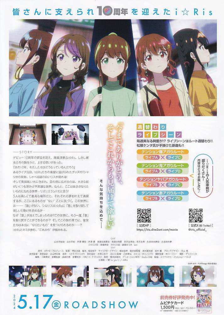 i☆Risの10周年プロジェクトの集大成として製作された劇場版アニメ。メンバー5人がファンタジックな世界で繰り広げる物語を、人気楽曲満載のライブシーンを盛り込みながら描き出す